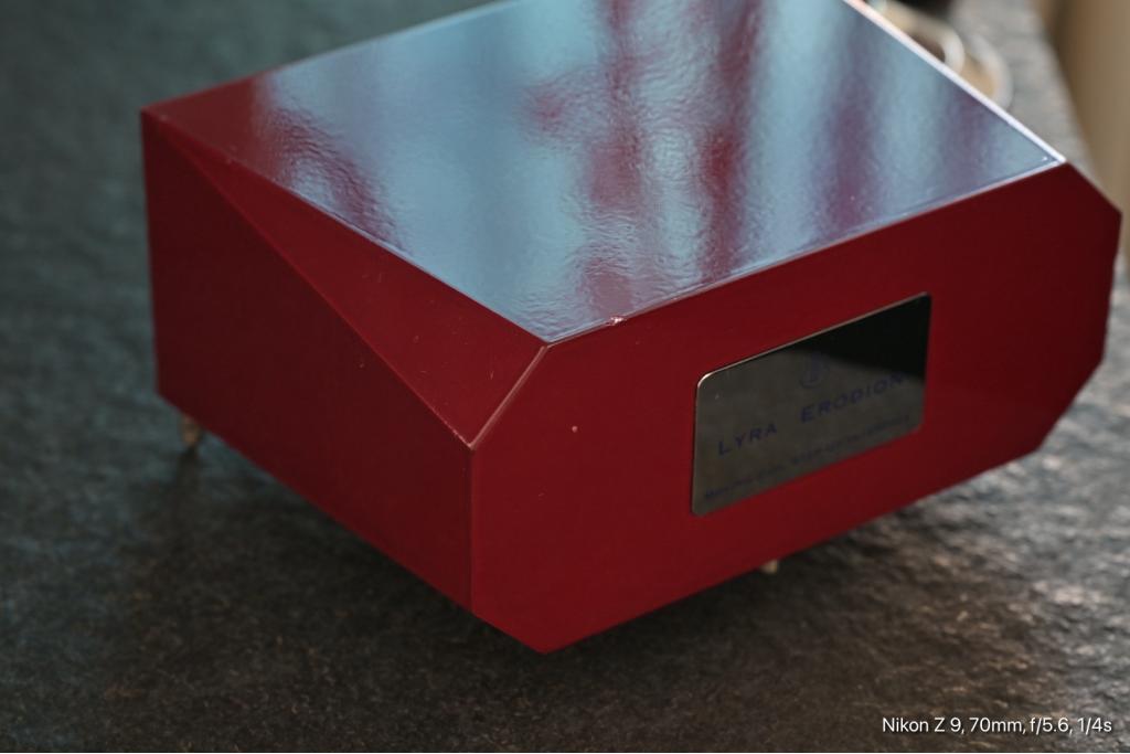Liebe Vinylfreunde, ich habe aus meinem Überbestand einen recht seltenen Lyra ERODION Stepup-Transformer NP abzugeben. Technisch absolut einwandfrei, optisch hat er allerdings wenige sichtbare Gebrauchsspuren also „dings“ aufzuweisen. Ich denke, damit kann man noch sehr gut leben. Der Nachfolger Erodion Evo kostet schon 6500€, das ist schon ein Haufen Geld dafür. Die Bilder sind aktuell also von heute, 23.11.2025.
