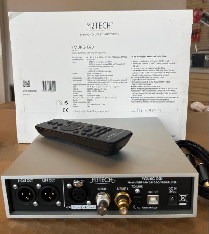 The Young DSD comes with all its original M2tech accessories (power supply*, USB cable*, XLR-RCA adapters, and remote control) and will be shipped in its original box.