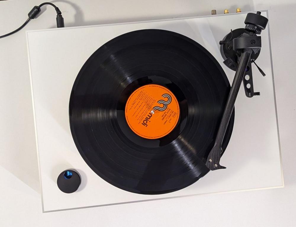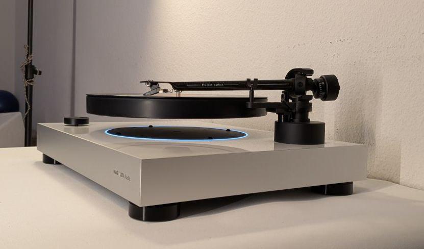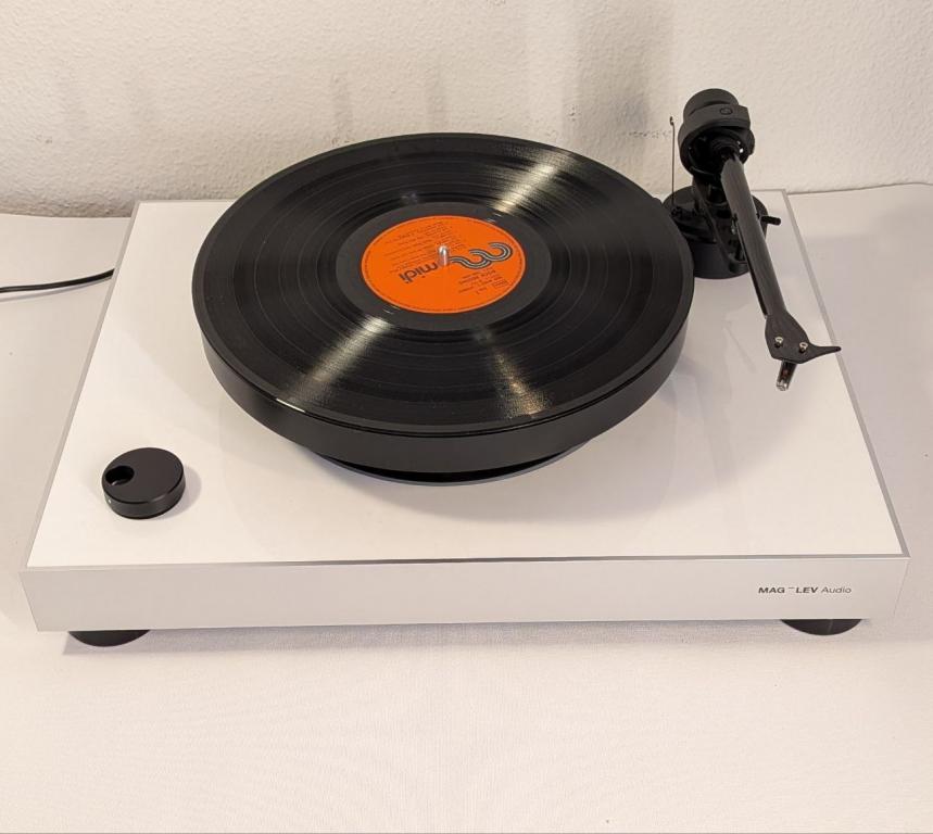 Floating turntable "white edition", currently sold out at the official seller. The platter is leviated by magnetism, semi-automatic, 33.3 and 45 r.p.m., platterfeet when not in motion and safety system in case of power outages.