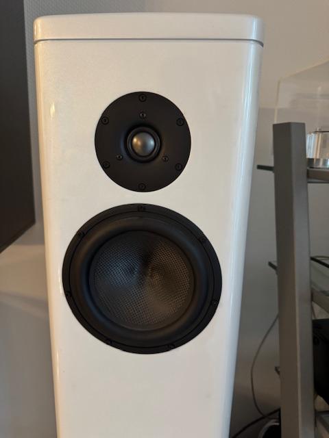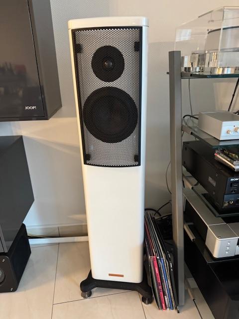 Magico S1 MK II in der Luxusausführung M-Coat weiss metallic hochglanz inklusive der optionalen magnetischen Metallabdeckungen. Absolute Spitzenklasse Chassis: diamantbeschichtete Berylliumkallotte und Grahphen Nanotec Mittel-Tieftöner. Zustand ktechnisch Top, optisch minimalste Kratzer an der Front und am Fuss, aber mit blossem Auge kaum zu sehen. Massives Aluminiumgehäuse 1 cm dick, Gewicht pro Box 54 KG!! Wirklich audiophile Speaker mit überragenden Tests. NP in dieser Ausführung EUR 35.000. Optional mit dem passenden Subwoofer Velodyne MicroVee X (aktuelles Modell) NP 1.400. Probehören an erstklassiger Elektronik möglich. Nur Abholung kein Versand. Privatverkauf, keine Garantie oder Gewährleistung