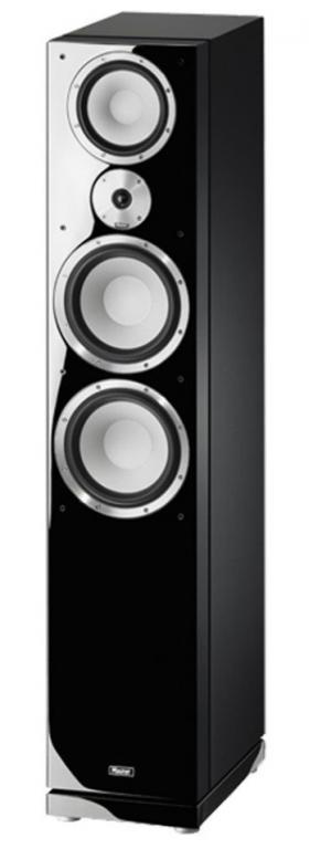 Ausgestattet ist der Lautsprecher mit zwei 200 mm Tieftöner, einem 170 mm Mitteltöner und einem 25 mm dominaten Hochtöner. Der Korpus wurde mehrfach versteift und er besitzt eine extrem resonanzarme 45-mm-Gehäusefront. Aufgrund des computeroptimierten Lautsprecherchassis und der tadelloser Pegelfestigkeit wird ein klares und dynamische Klangbild erzeugt. Mit der schönen Feindynamik ist der Lautsprecher sogar für Klassik und Jazz ausgezeichnet geeignet. Durch den fmax-Hochtöner mit erweitertem Frequenzbereich kann der Hochtonbereich etwas dominant wirken, hauptsächlich in akustisch lebendigen Räumen, jedoch lässt sich dies über Absenkung des Hochtonbereiches um ein paar dB entgegenwirken.