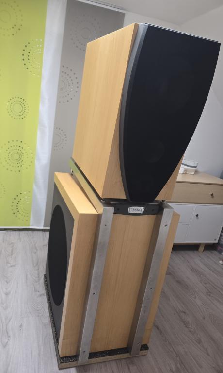 Nach sehr langer Überlegung, trenne ich mich von diesem außergewöhnlichen Lautsprecher, da mir der Platz fehlt, sie gebürtig zu betreiben.