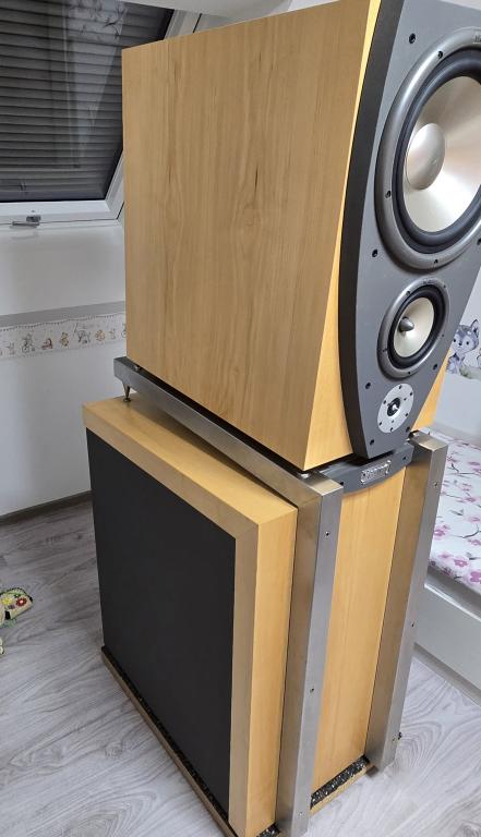 Bei mir stehen die Lautsprecher auf speziell angefertigten und kugelgelagerten eingelassenen Rollen auf 5 cm starken Böden, um sie leichter zu bewegen. Diese können bei Bedarf mitgegeben werden.