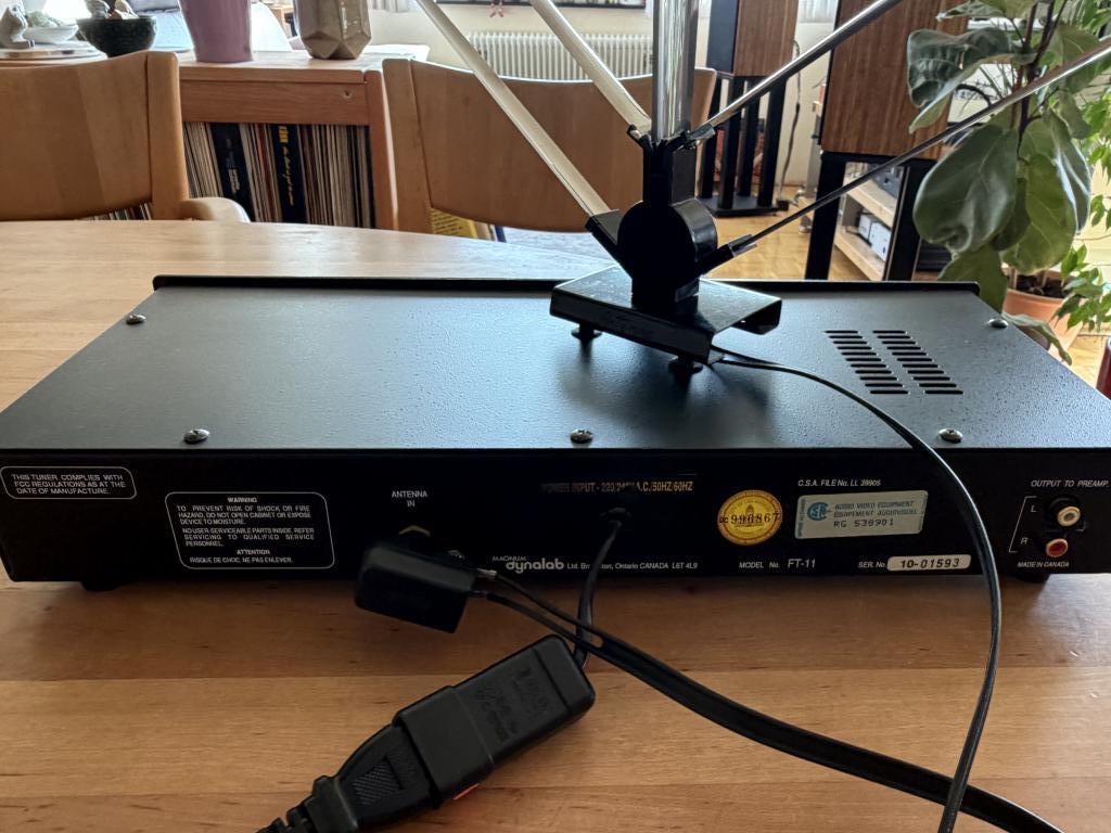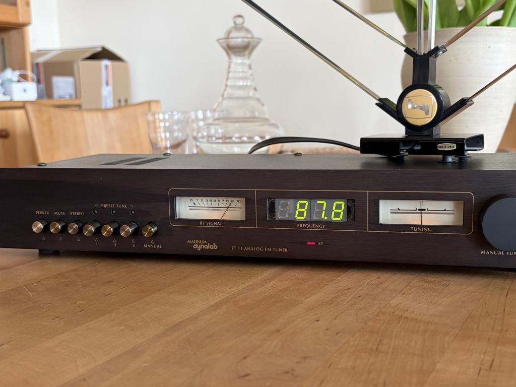 Verkaufe noch immer sehr gut klingenden Analogtuner inklusive Zimmerantenne der renommierten Marke Magnum Dynalab aus Kanada. Der FT11 war seinerzeit der Einstiegs-Tuner bei MD und wird schon einige Jahre nicht mehr hergestellt. Die heutigen MD-Tuner sind alle wesentlich teurer, aber dann klanglich auch besser, falls man das braucht. Ich habe den FT11 lange und gerne in meiner HiFi Anlage gehabt und es funktioniert noch alles tadellos, inklusive 3er Sender-Presets, die alternativ zur manuellen Senderwahl gewählt werden können (ein entsprechender Mini-Schraubenzieher liegt bei). Die im Preis enthaltene Zimmerantenne SR100 funktioniert erstaunlich gut mit dem FT11, kann aber eine sehr gute Stabantenne nicht ganz ersetzen. Ein geerdetes Netzkabel wird auch mitgeliefert - den passenden Kaltgerätestecker habe ich selbst installiert.