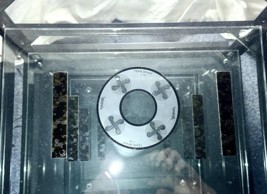Alle Spikes sind aus Edelstahl! Die erste Glasplatte hat Harmonix Tuning für einen besseren Klang.