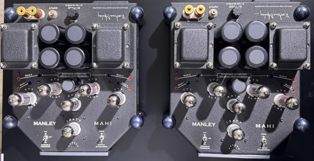 I am selling a pair of Manley Mahi mono power amplifiers, renowned for their refined musicality and exceptional driving capability despite their compact size. Designed and built in the United States, these amplifiers use a carefully engineered tube configuration that combines detail, dynamics, and the warm character typical of Manley’s finest designs.