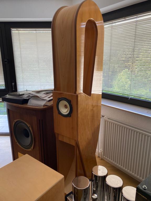 Hedlund Hörner mit Voxativ Breitbänder. Sehr homogen spielende Lösung. Sehr fein in der Wiedergabe und hochwertig gefertigtes Horn.