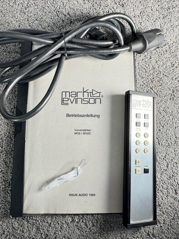 Im Lieferumfang enthalten ist: Mark Levinson No.38, Netzkabel, Anleitung, Fernbedienung und die originale Verpackung.