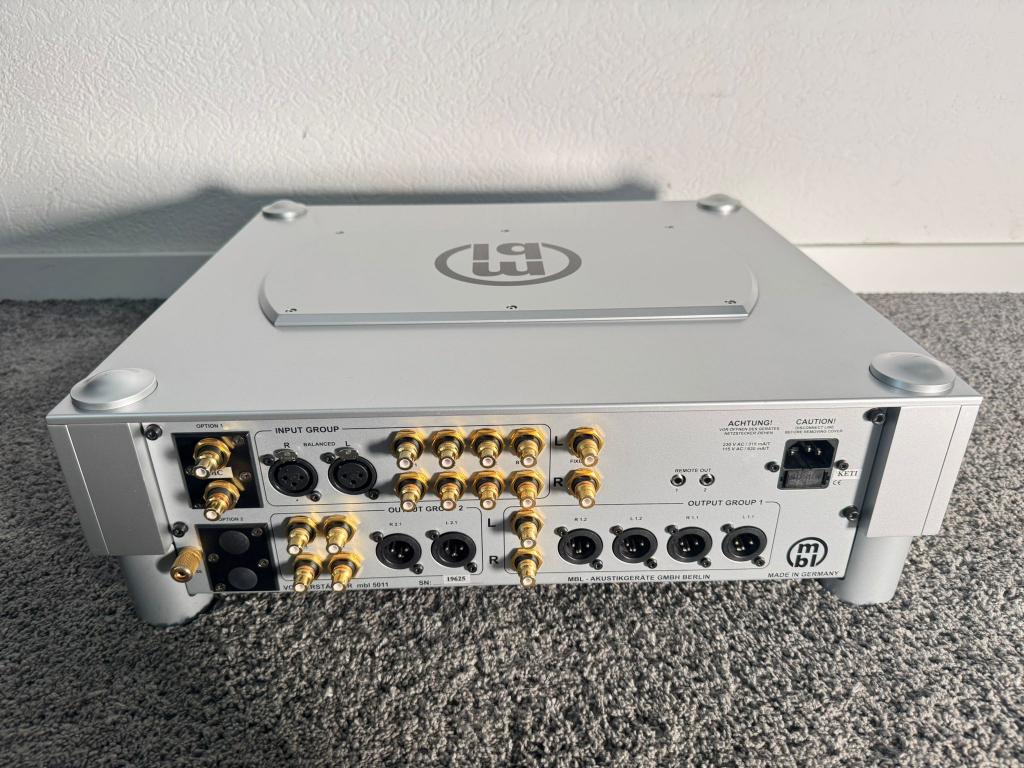 Here I sell an used but very good condition MBL 5011 pre amplifier in silver. Small traces of use at the side visible.