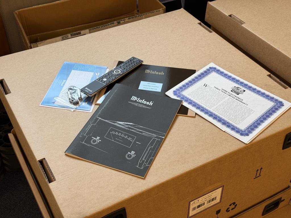 Comes in original box and packaging, detachable IEC AC power cord, remote and manual.