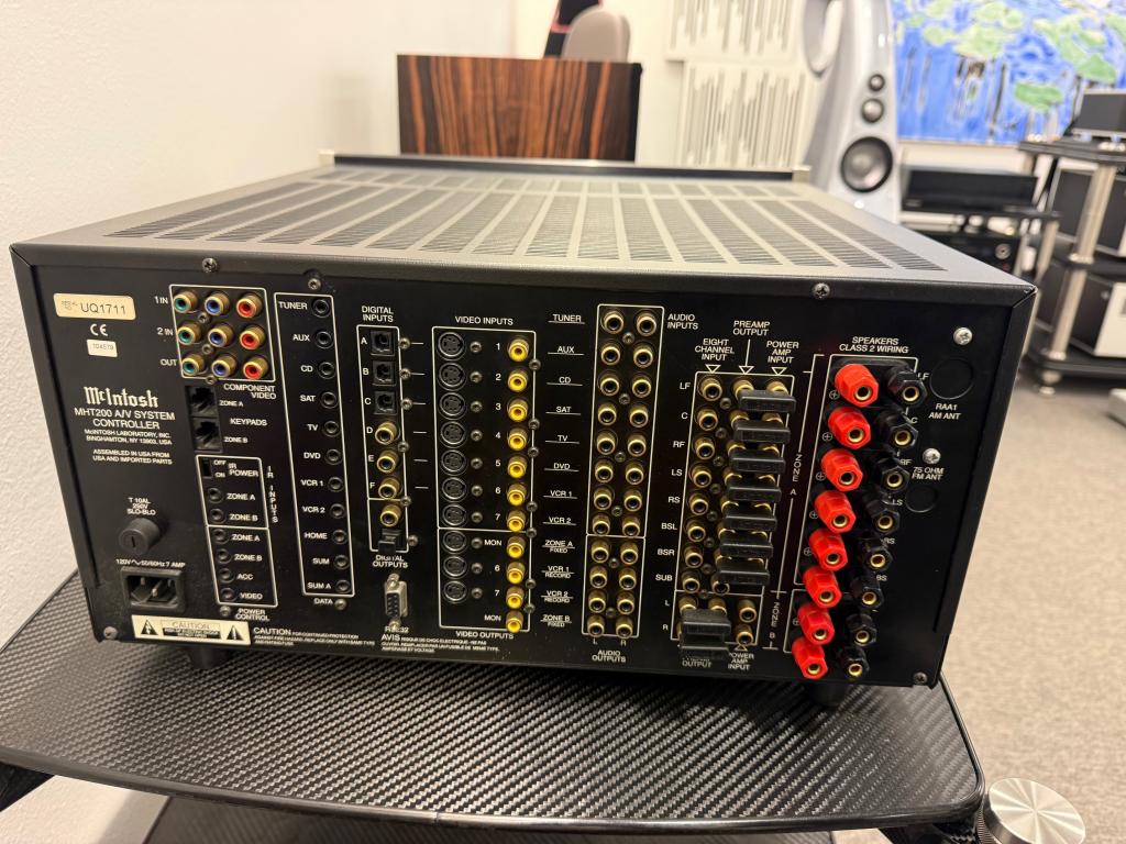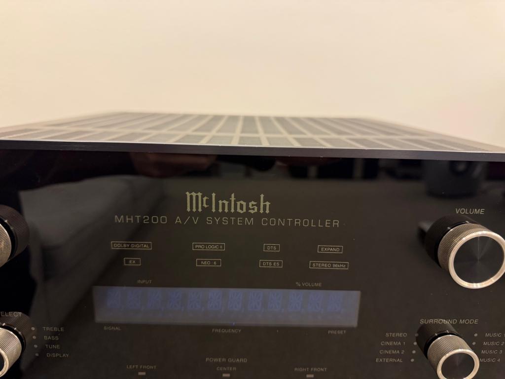 We are selling McIntosh MHT200, which is 7.1 or 6.1 channel AV amplifier. It is in very good condition (check pictures for all minor imperfections) and comes with original remote control and HDMI upscale adapter. See the last picture for all the accessories that this unit comes with. Price does not include shipping costs.