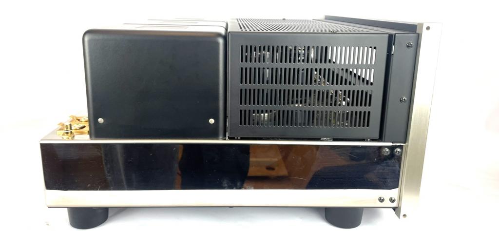Die Endstufe besteht aus zwei separaten Leistungsverstärkerkanälen, die jeweils 100Watt an 2,4,8Ohm Lautsprechern in Stereo aufnehmen können. In Monobrückenschaltung stehen 200Watt in 1,2,4,8,oder 16 Ohm Lautsprecher betrieben werden.