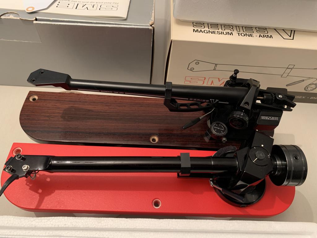 Nur für schnell entschlossene gebe ich noch eine weitere AX 8G Base mit SME Adapter dazu. Die beiden vorletzten Bilder zeigen die Base. Denkbar wäre auch ein SME V Tonarm, gerne auf Anfrage! Im vorletzten Bild mit Mission Mechanic zu sehen. Beide Tonarme in OVP und Manual.