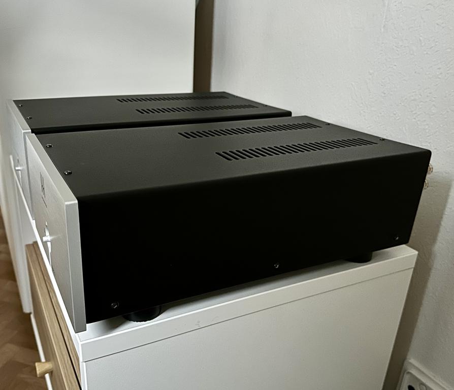 Es handelt sich um Class AB Endstufen mit jeweils 135 Watt an 8 Ohm. Die Endstufen weisen eine röhrenartig warme Klangsignatur auf ohne Dynamik einbüßen zu müssen.