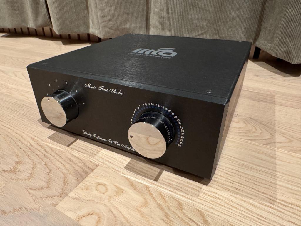 We are selling a passive pre-amp from Music First that was traded in from one of our customers. It is a Baby Reference V2 in Black finish. It is in pristine condition. It has had 2 owners, but the first owner had it very briefly and the second owner has used it sparingly. The photos in the ad show the actual product for sale.