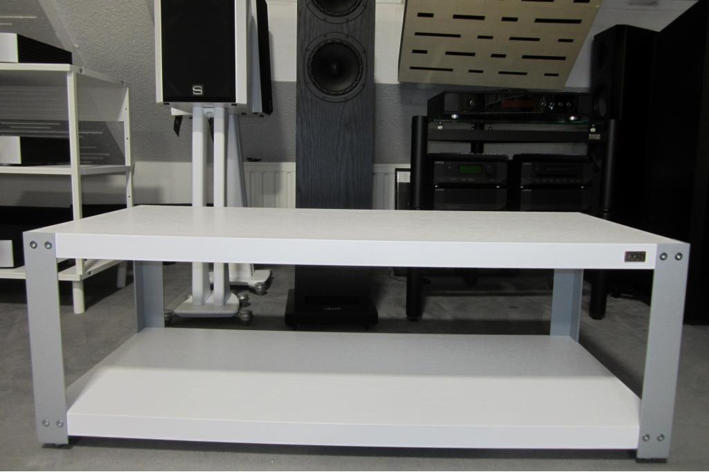 von Music Tools aus Italien das HiFi Rack Alica in weiß mit 2 Doppelebenen