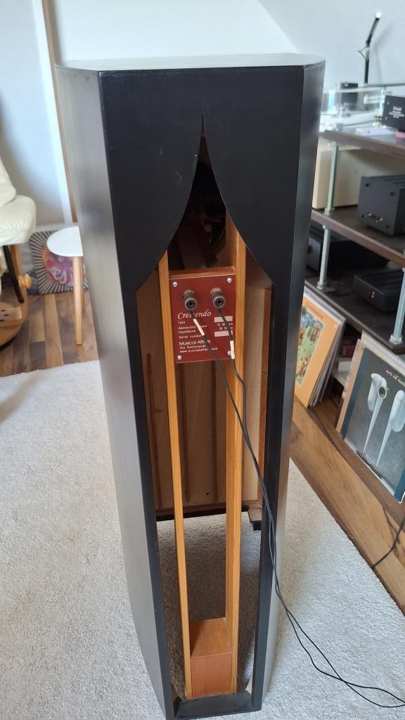 Die Crescendo wurden von Hans Kortenbach "Musical Affairs" entwickelt und gebaut. Er hat die handgefertigten Lautsprecher nach dem Prinzip von Musikinstrumenten(z.b.Violine) konstruiert.