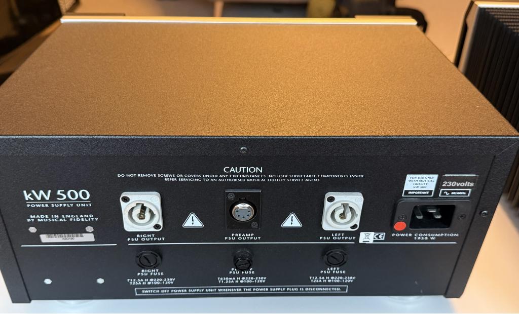 Biete einen Vollverstärker Musical Fidelity KW500 mit externen Netzteil und zwei Röhren im Vorstufen Eingang.