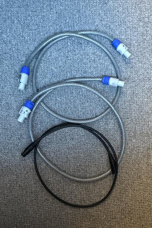 Alle nötigen Kabel zum Anschluss zwischen dem Verstärker und dem Netzteil mit zwei großen Ringkerntrafos sind vorhanden.