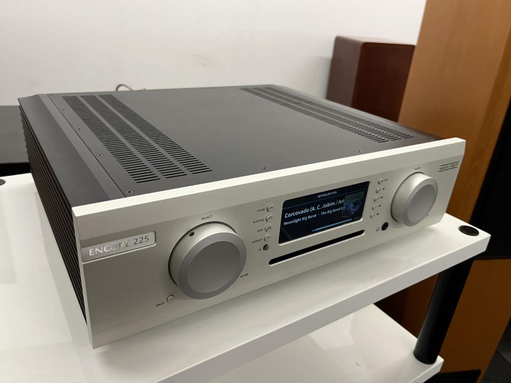 Als erstes fällt das große, hochauflösende Farbdisplay auf, über das alle wesentlichen Funktionen abzulesen sind. Grundsätzlich ist der Encore 225 einfach und intuitiv zu bedienen und bietet eine komplette Ausstattung. Es verfügt über 225 Watt pro Kanal und eine riesige Auswahl an Anschlüssen: 3 analoge Eingänge, 4 digitale Eingänge, Netzwerkkonnektivität, ein hochwertiger Kopfhörerverstärker, feste und variable Line-Pegel-Ausgänge, sowie einen digitalen Ausgang.