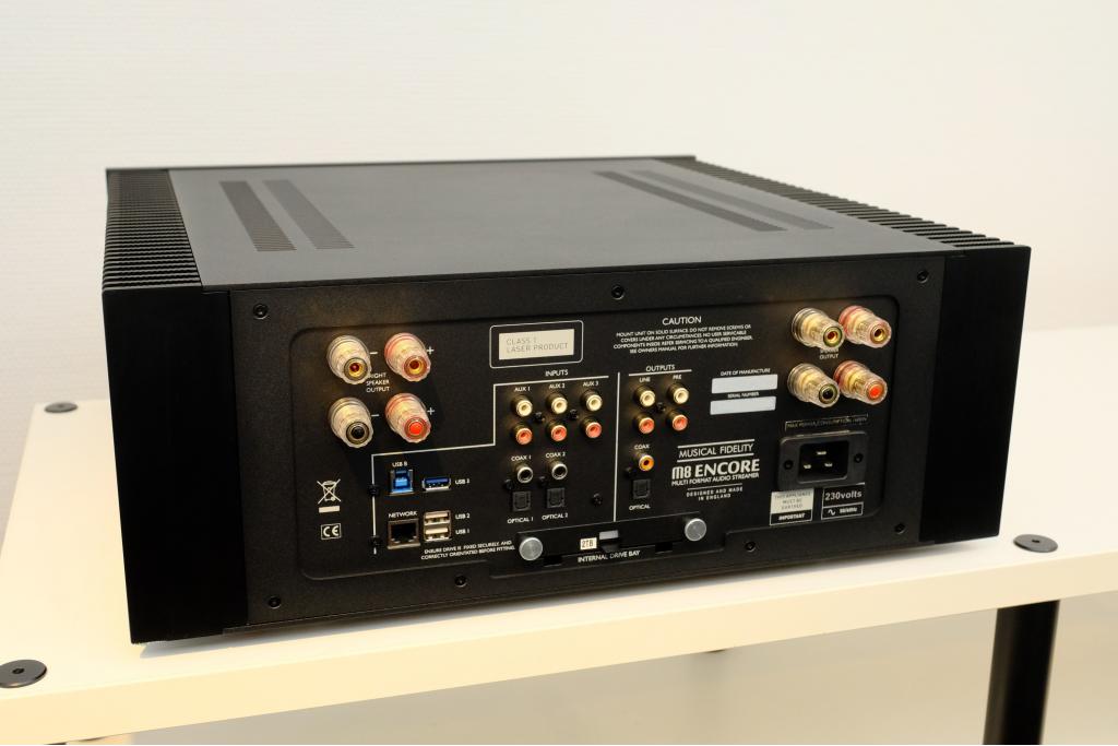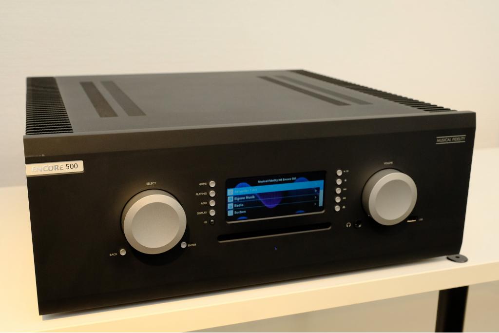 Der Musical Fidelity M8 Encore 500 ist eine komplette Audiolösung mit der Sie all Ihre Musik an einem Ort aufbewahren können. Der Musical Fidelity M8 Encore 500 akzeptiert nahezu jede denkbare analoge oder digitale Audioquelle. Es gibt ein sehr klares, großes, hochauflösendes Vollfarbdisplay, damit Sie sehen können, was vor sich geht. Das Gerät ist einfach und intuitiv zu bedienen. Es hat 500 Watt pro Kanal und eine große Auswahl an Anschlüssen; 3 analoge Eingänge, 4 digitale Eingänge, 4, hochwertige variable Line-Pegel-Ausgänge sowie einen digitalen Ausgang.