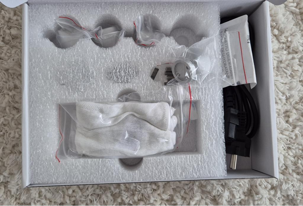 Zur weiteren Feinabstimmung gibt es einen Zubehörkarton mit Spike-Kegeln und Unterstell-Teilen, Handschuhen, Kabel.