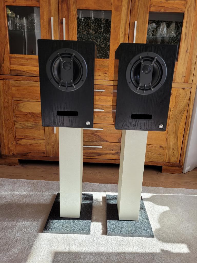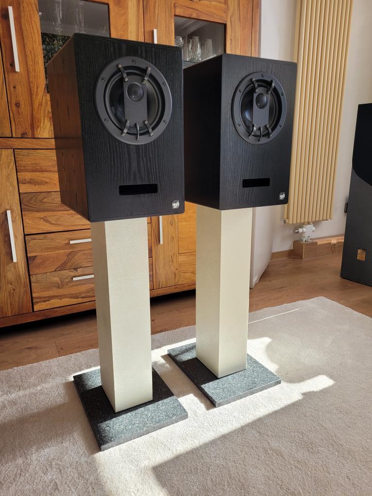 Das Paar Lautsprecher stammt aus einer Zweitanlage,und entsprechend wenig genutzt. Deshalb steht er jetzt zum Verkauf... Technische Details findet man im Netz .Die abgebildeten Ständer nur gegen Aufpreis!