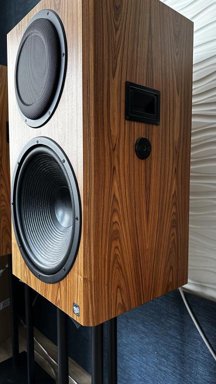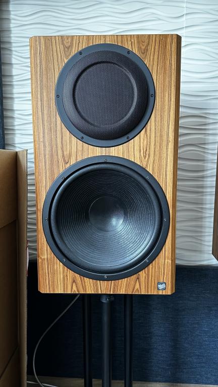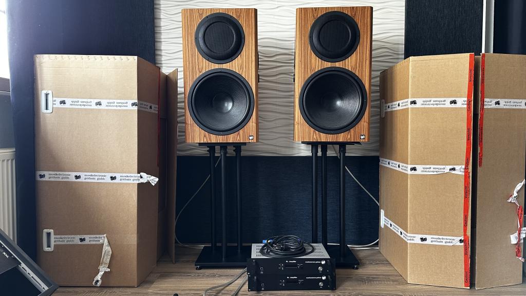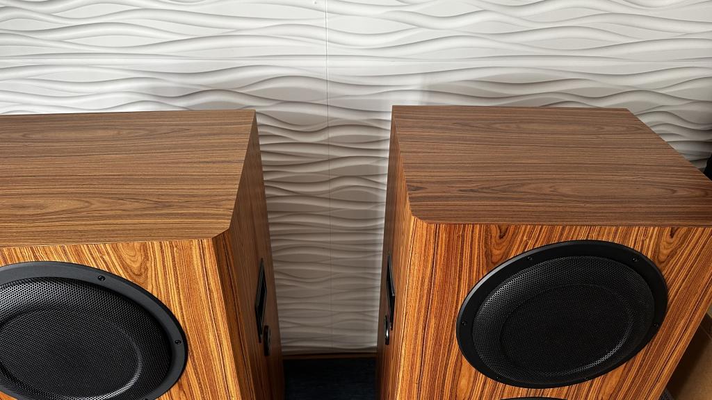 Dieses Paar ist eine Sonderanfertigung in Palisander Natur – genau das Furnier, das Geithain auf seiner Website als repräsentatives Beispiel zeigt. Palisander verleiht den massiven Boxen eine warme, hochwertige Optik, perfekt für Studios oder anspruchsvolle Wohnräume.