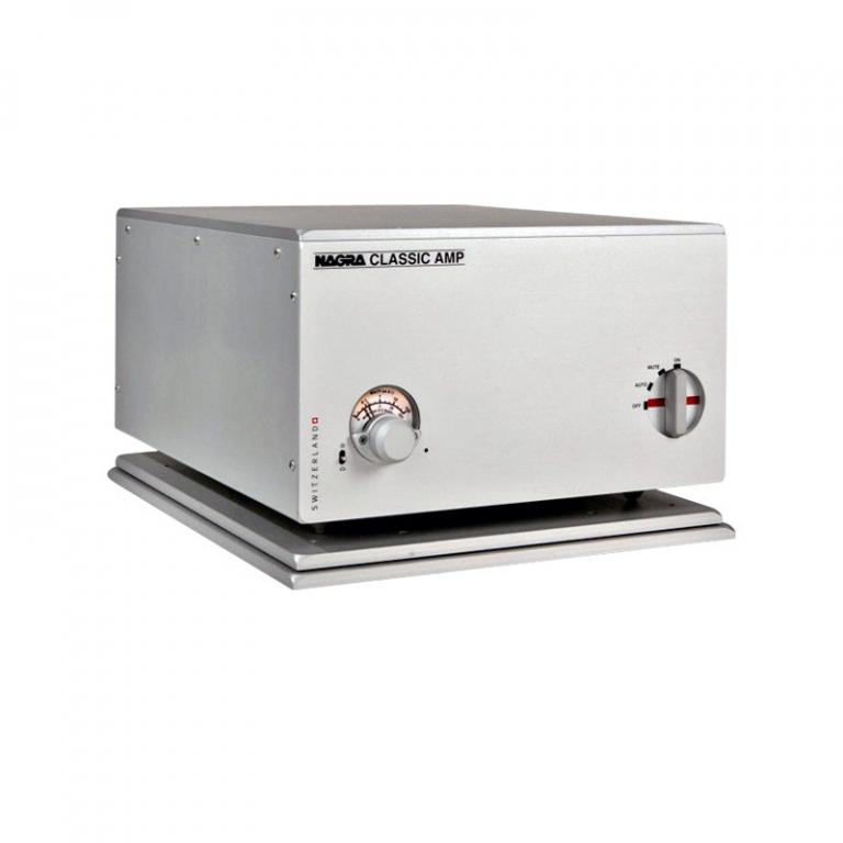 Die Filterung wird über eine Reihe von Kondensatoren erreicht, die insgesamt 300.000 beträgt μF. Dieses Konzept der Stromversorgung, das einen effizienten Energietransfer gewährleistet, der umgehend selbst auf die abruptesten Transienten reagiert. Der Nagra CLASSIC AMP ist auf der Vorderseite mit einem herkömmlichen Nagra Modulometer ausgestattet, das die Leistung der einzelnen Ausgangskanäle anzeigt.