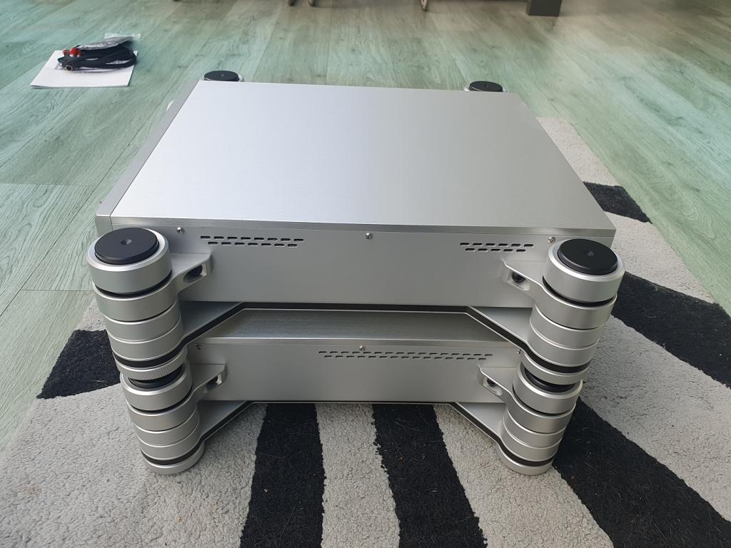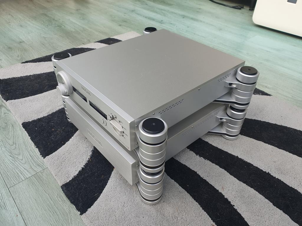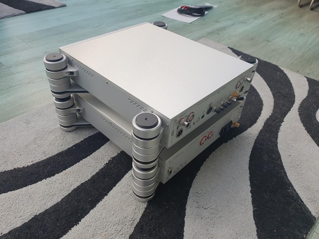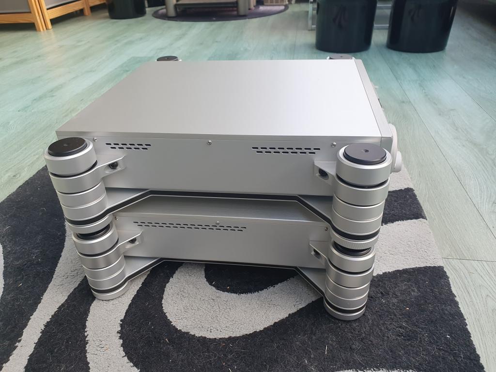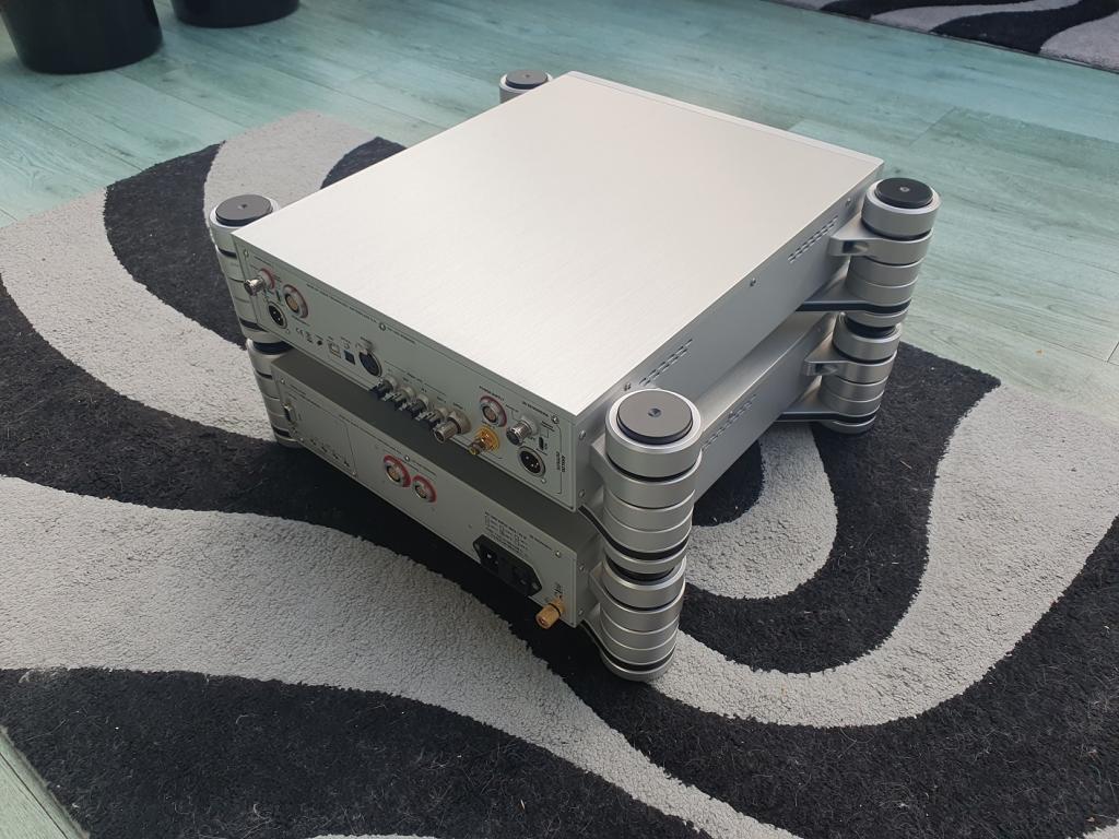 Ähnlich wie der HD PreAmp besteht auch der HD DAC X aus zwei getrennten Einheiten, aufgeteilt in Signalverarbeitung und Netzteil. Die aufwändigen, in den beiden Gehäusen integrierten mechanischen Entkopplungen wurden gegenüber dem HD PreAmp nochmals verfeinert und arbeiten hier noch effizienter.