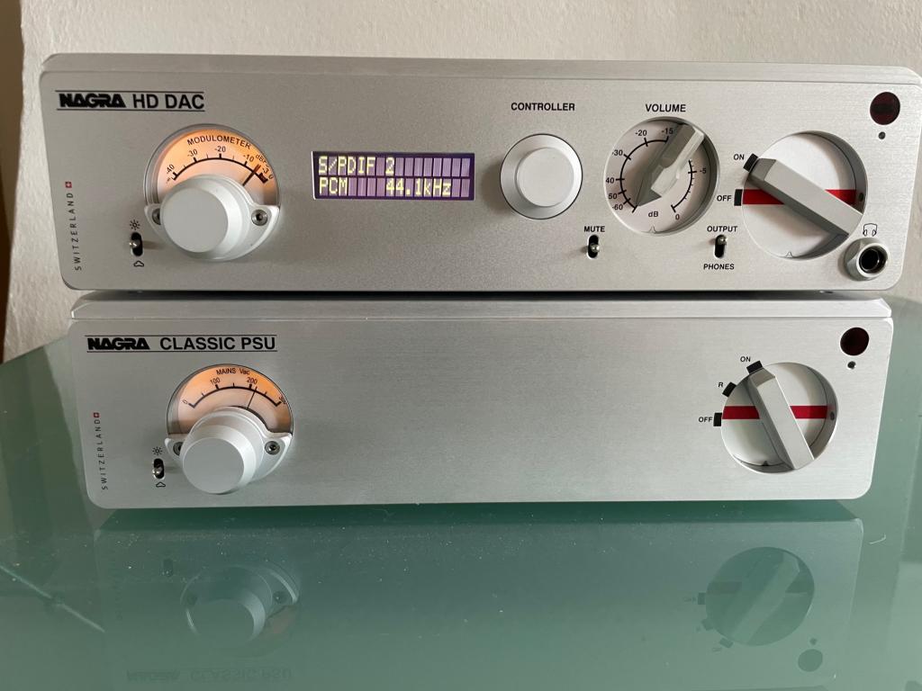 Komplett und im guten Zustand: Nagra HD Dac mit Classic PSU, mit 2 DC kabel, Bedienungsanleitungen und Originalverpackungen.