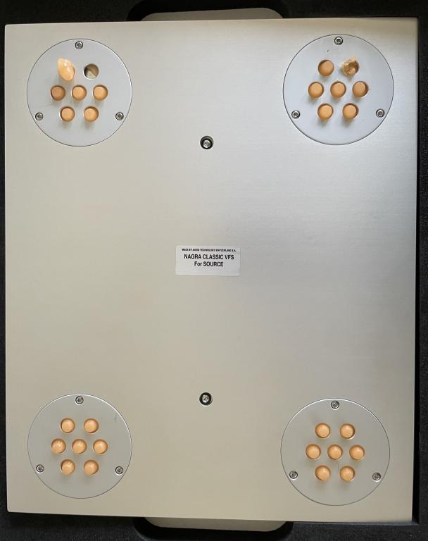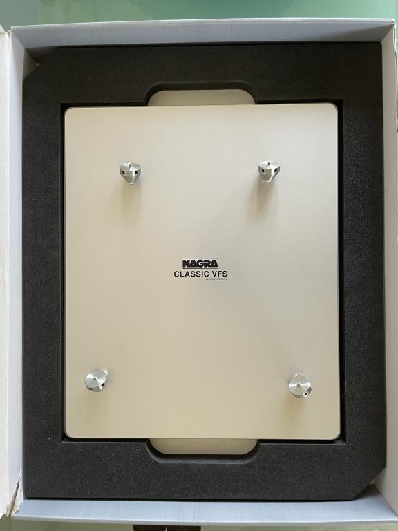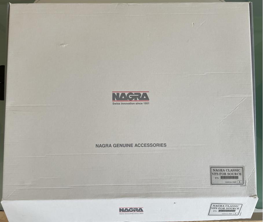 Nagra VFS L for Sources, incl. box and spikes. But see pictures: the baseplate has little dameges. (Used on gladssplate, pushed forward, and the damage was done).