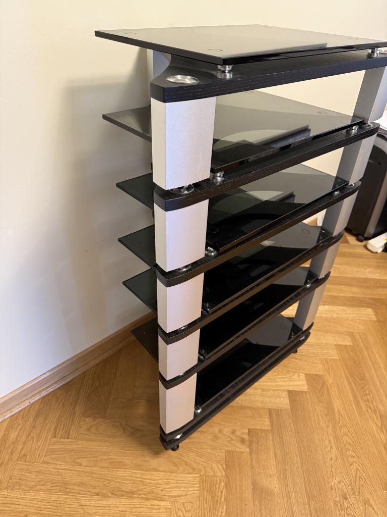 Ich verkaufe mein Naim Fraim mit 5 Ebenen+Base in Esche schwarz. Die unterste Ebene ist die höhere Variante mit 264 mm (siehe Bilder).