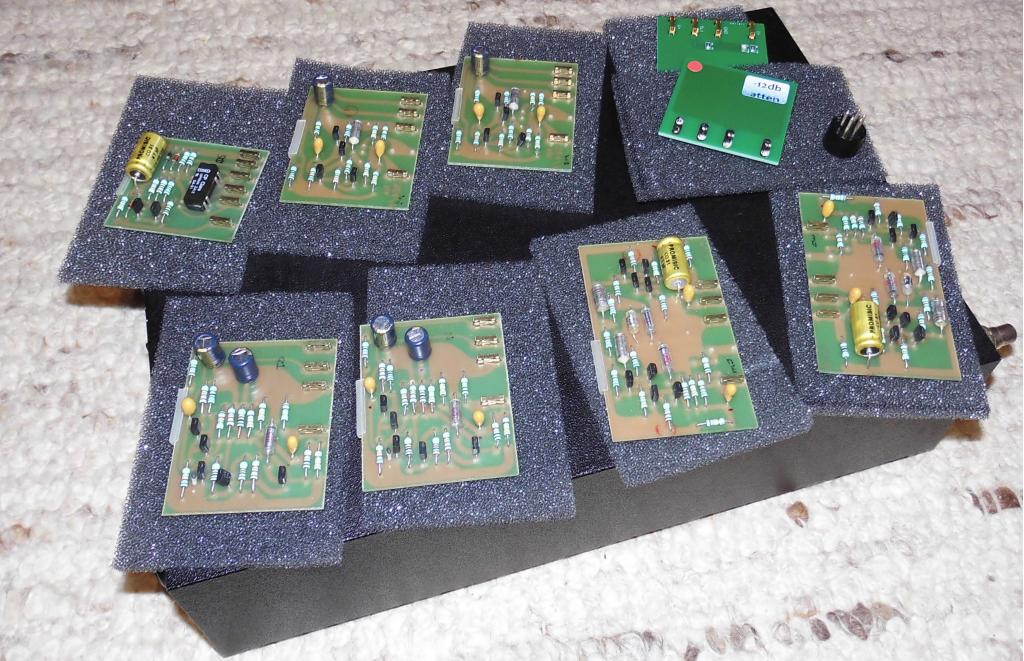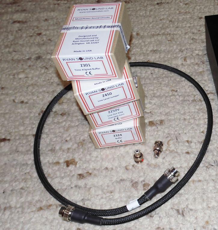 Dazu (2022) einen kompletten Satz boards von Ryan Sound Labs RSL aus den USA. Diese sind die Z250v line out (variable), Z301 time alligned buffers, Z500 relay board, Z450 line level jumper, eine zusätzliches Paar Z450 line level jumper mit -12dB Abschwächung sowie die Z324 buffer boards am tape out.