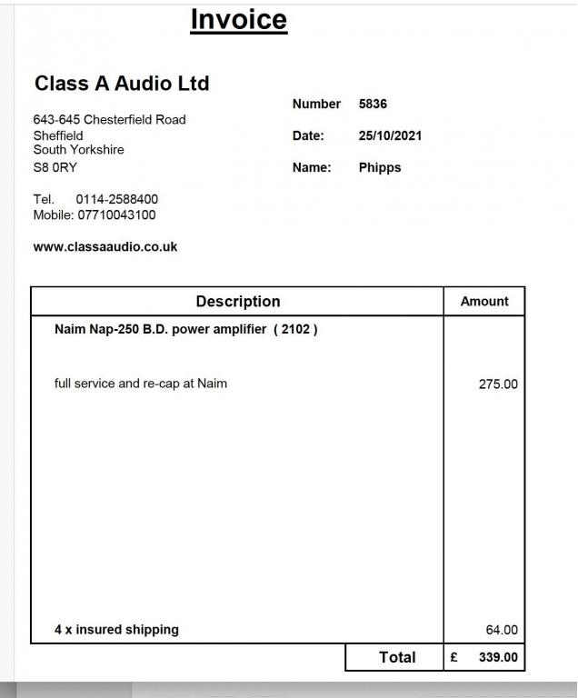 Dieser Verstärker wurde bei Naim in Salisbury, England, vollständig geprüft und wiederaufgenommen. Siehe Rechnung.