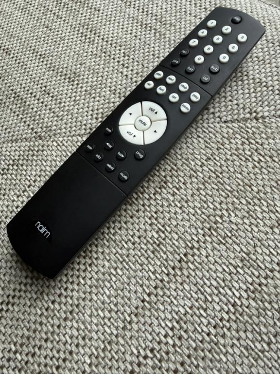 Hinweis: Das Naim-Logo leuchtet gut erkennbar und gleichmäßig grün. Es ist technisch bedingt (bei dieser Baureihe normal und kein Defekt) etwas weniger „stechend“ hell als die Input-LEDs der Tasten – siehe Foto im Betrieb.