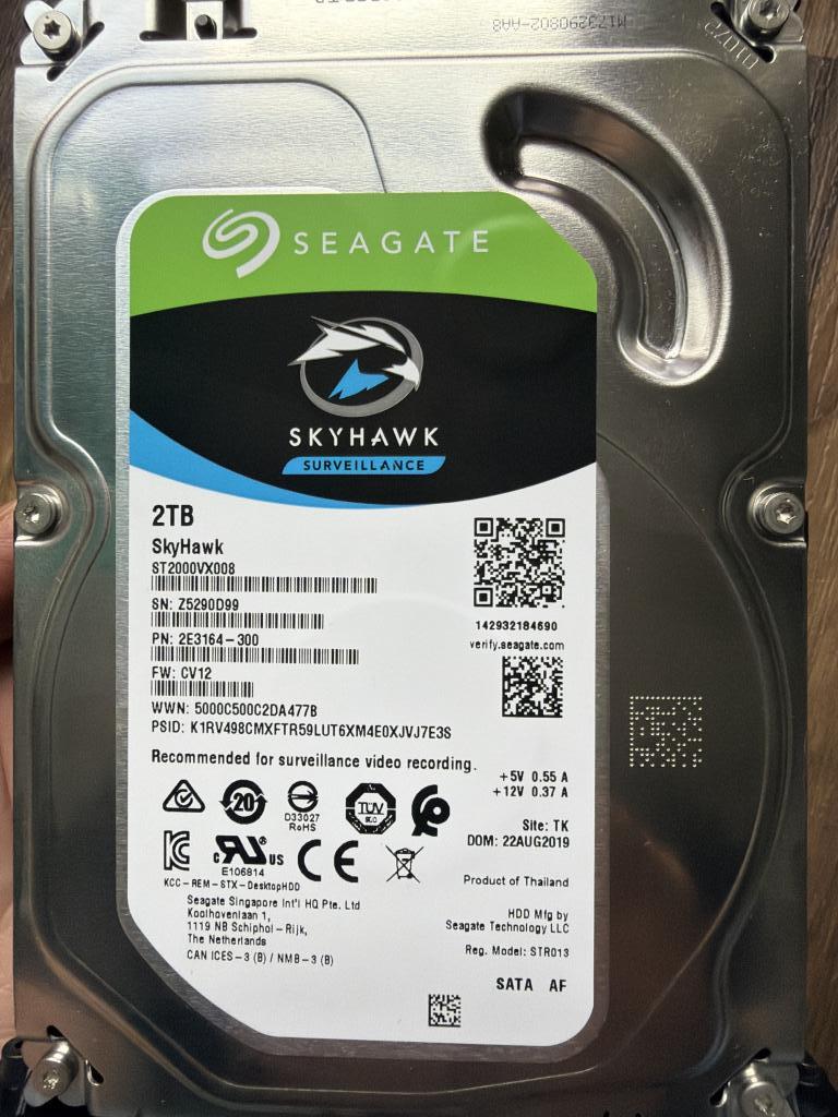 Eingebaut ist eine 2TB-Festplatte Skyhawk von Seagate (Empfehlung vom Vertrieb).