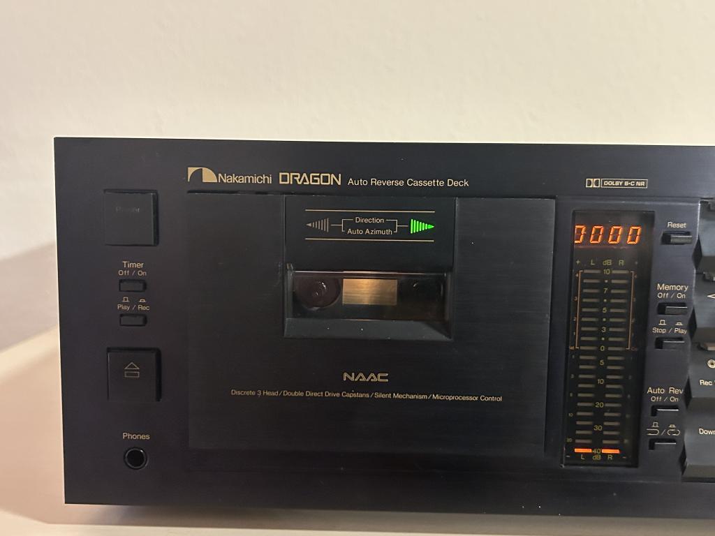 A Nakamichi Dragon cassette deck is offered for sale from first owner, in scratch-free, well-preserved, excellent cosmetic condition.