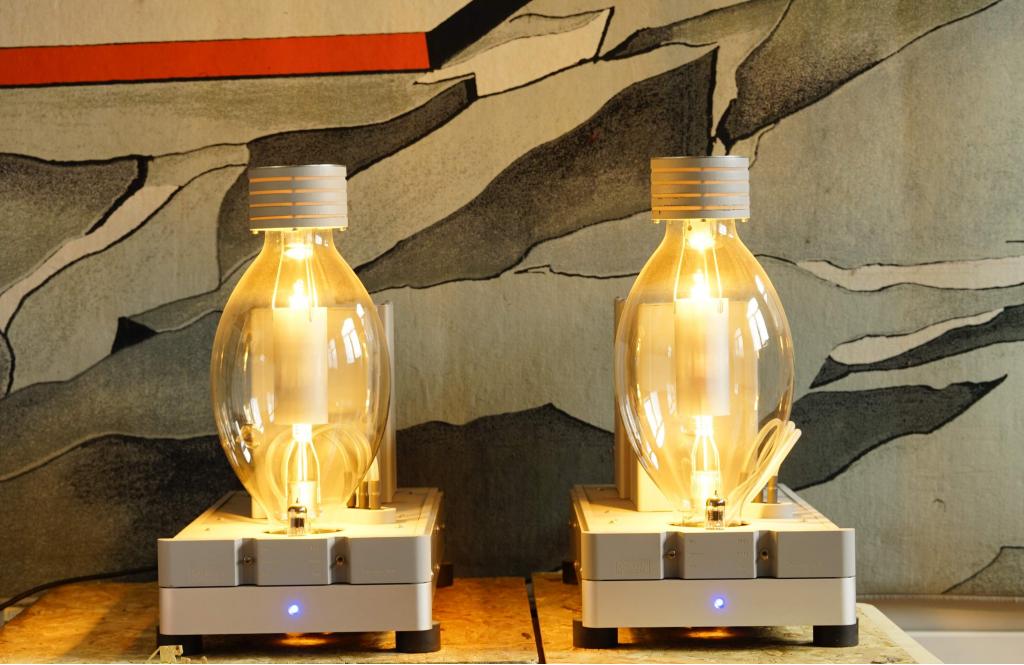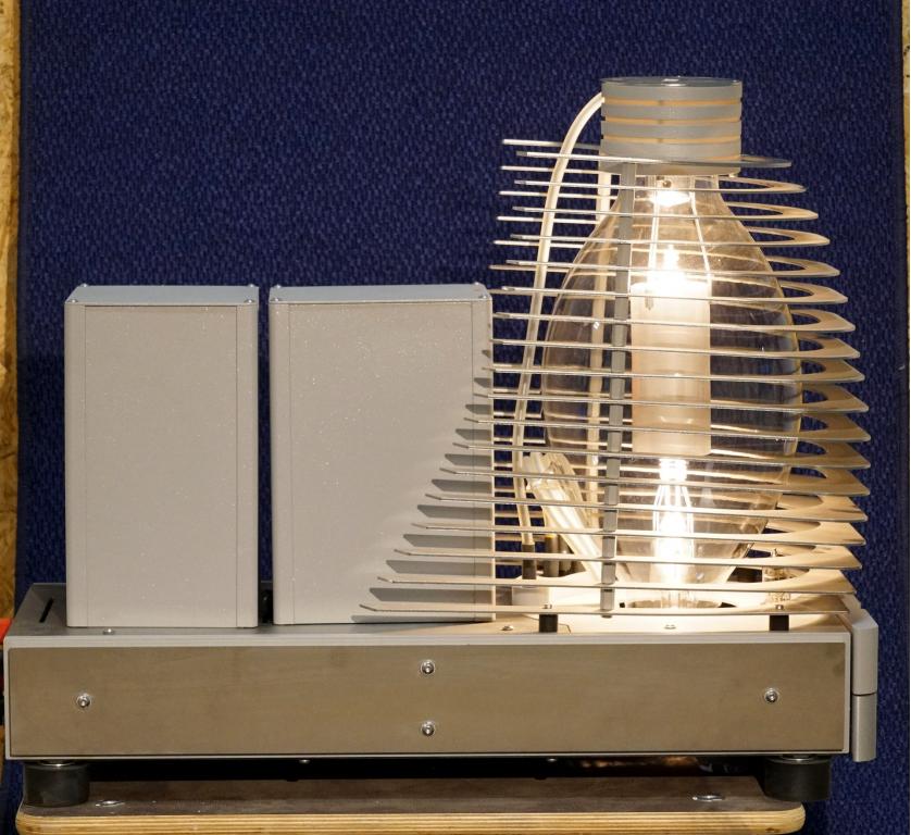 The BEST tube amplifier ever! If you don't believe it, google the article in Hifi-Forum from 3 May 2016 ... Further “descriptions” are pointless, but: Test listening is possible and worthwhile! Here in the demonstration on speakers from Peak Consult, for example. Test listening is also possible throughout Germany by arrangement. The tube is 35 cm high and 20 cm in diameter, making it the largest tube in the hi-fi sector. The next smallest model, the Transmitter, received a top rating in Audio 7/2014 and was awarded the highest score of any amplifier ever tested. Please note: there is a significantly older model of the Magma, which does not have “New” in its name and has a different design and tube.