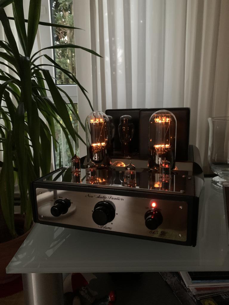 Ich biete hier meinen exzellenten Röhren Vollverstärker New Audio Frontiers 845 SE in Farbe Silber/ Schwarz ( ohne Fernbedienung ) an.