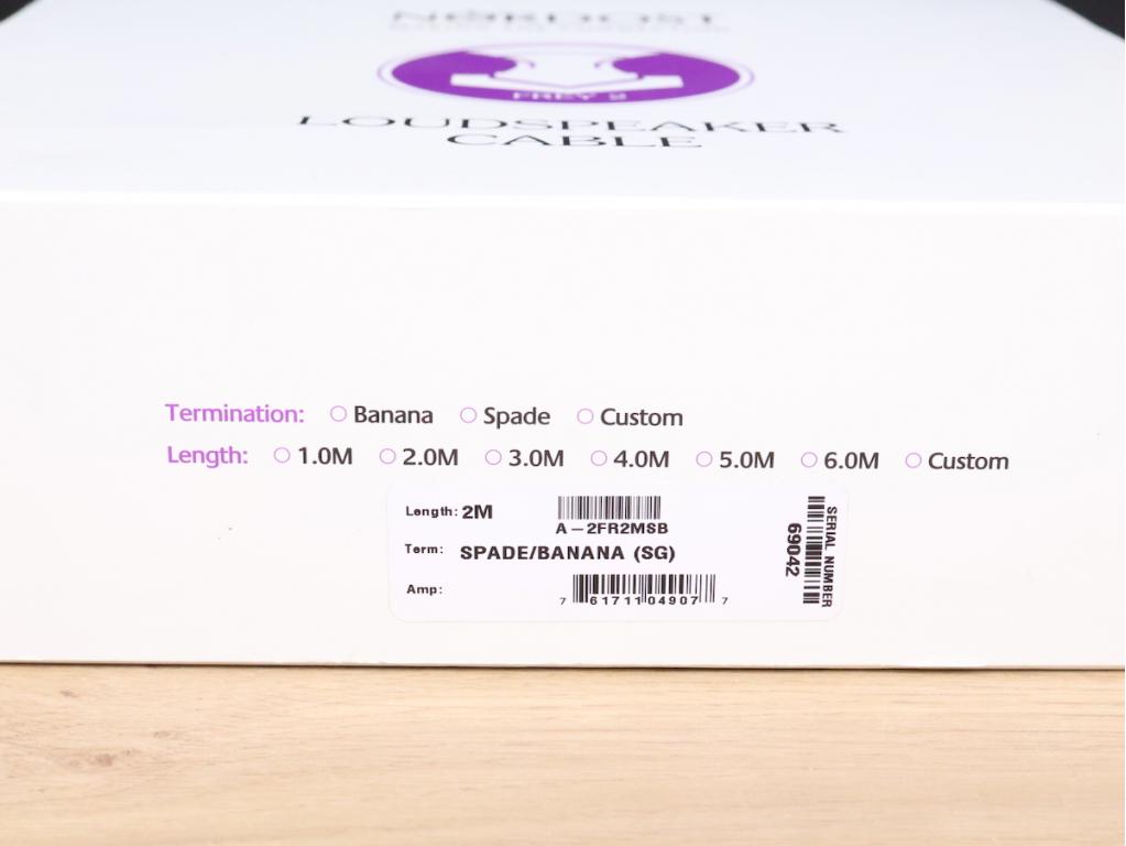 The length is 2,0 metre and they have the original spades (amplifier sides) and hollow banana connectors (speaker sides). Serial number is 69042. Retail price is 4.610 euro. Check our other listings for more interesting items. Free shipping worldwide!