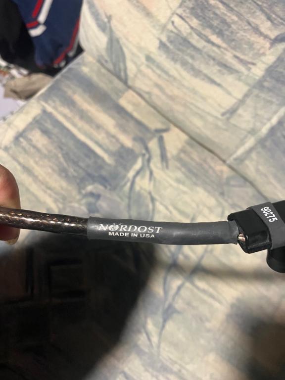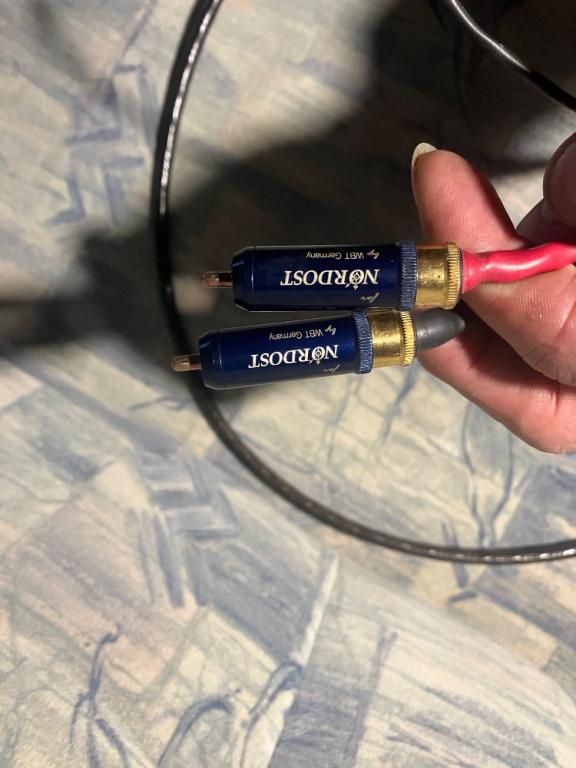 Nordost Tyr 1 turntable cable with angled connector on one side, WBT 0110 Cu connectors on the other side, cable length is 1.20 meters