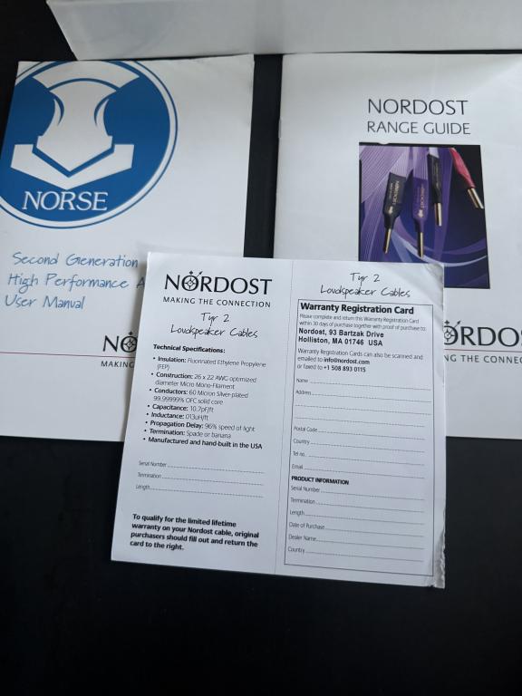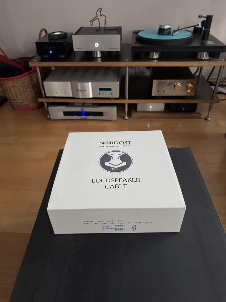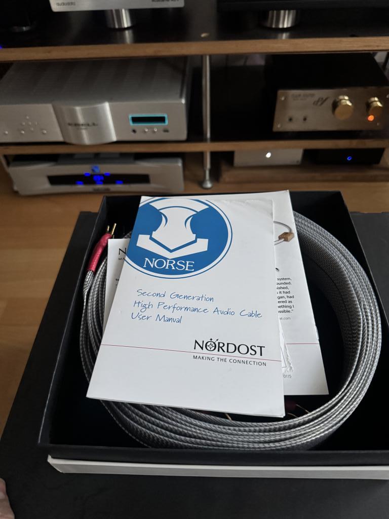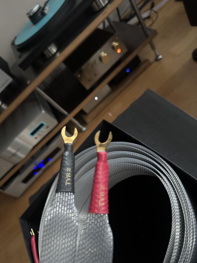 Verkaufen mein Nordost Tyr 2 Lautsprecherkabel wegen Umstellung auf ein kürzeres 2 Meter langes Nordost Kabel. Das Tyr 2 ist original konfektioniert, 3 Meter Lang und beidseits mit Kabelschuhen ausgestattet.