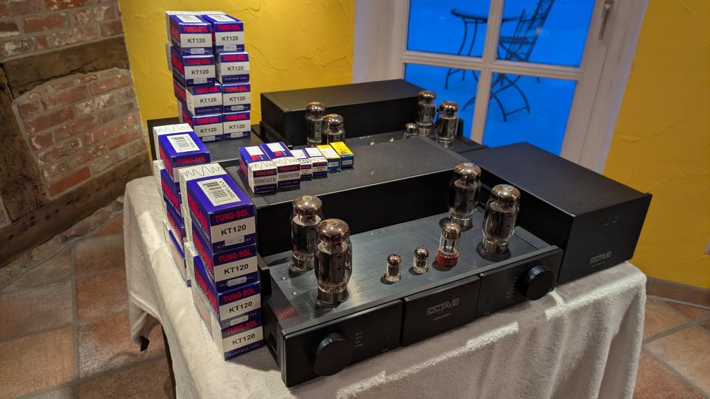 Diese Version hat noch die begehrten russischen KT120 Röhren (kosten aktuell Aufpreis). Der installierte Satz ist nahezu neu (keine 20h gelaufen). Zusätzlich gebe ich noch 2 komplette Sätze KT120 Röhren dazu - diese sind jeweils 5 Jahre im Einsatz gewesen, funktionieren aber noch tadellos.