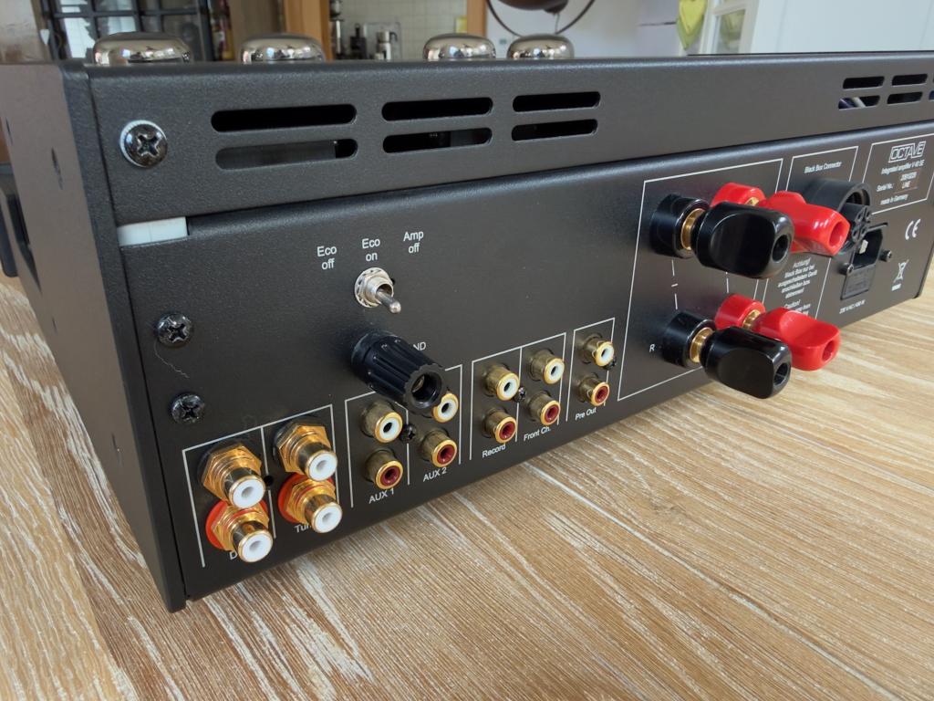 Für 2 Eingänge wurden die sehr schlichten Chinch Buchsen durch kontaktsichere hochwertige Modelle ersetzt.