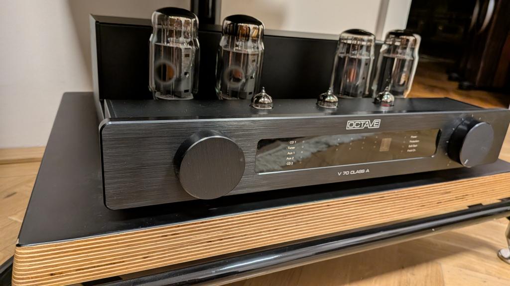Der Octave V70 Class A ist ein Ausstellungsstück und wurde bei Vorführungen verwendet. Der Zustand kann ruhigen Gewissens als "so gut wie neu" bezeichnet werden. Komplett mit sämtlichem Zubehör sowie der originalen Verpackung. Auch ein Satz KT88 Röhren wäre verfügbar (wenige Betriebsstunden)
