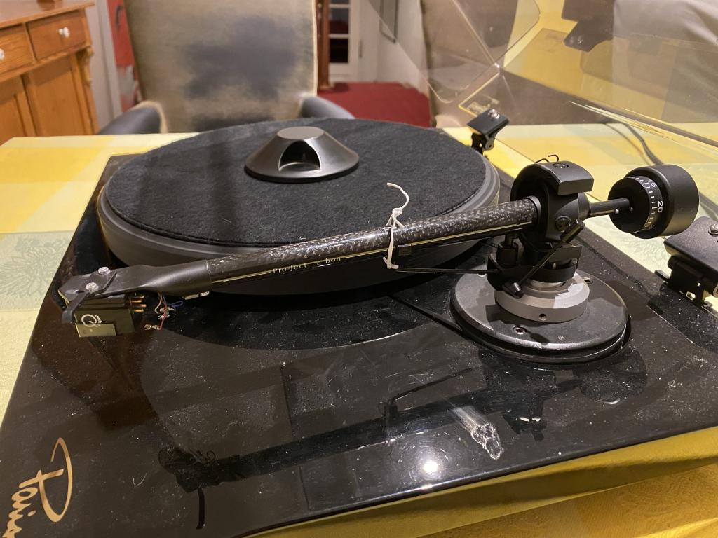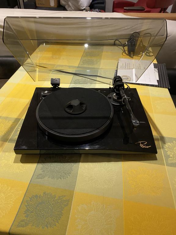 Der Erstbesitzer hat den ursprünglichen Tonarm durch einen Pro-Ject 9 cc Carbon-Tonarm ersetzt, wie er seit der Version Mk V am Paris serienmäßig verbaut wird. Ebenfalls vom Vorbesitzer wurden die Scharniere der Staubschutzhaube erneuert, die eine bekannte Schwachstelle des Paris darstellen.