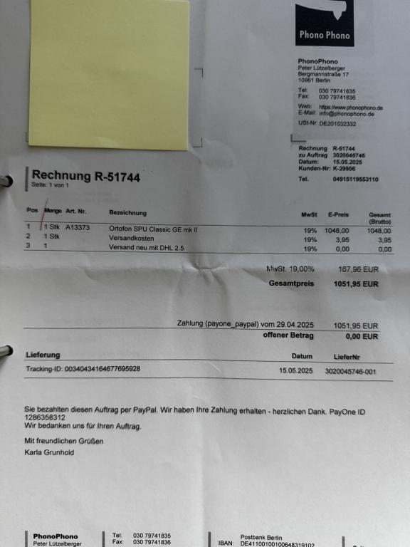 Gerät wurde neu von mir bei PhonoPhono gekauft - Rechnung ist vorhanden.