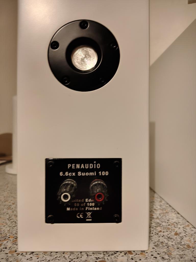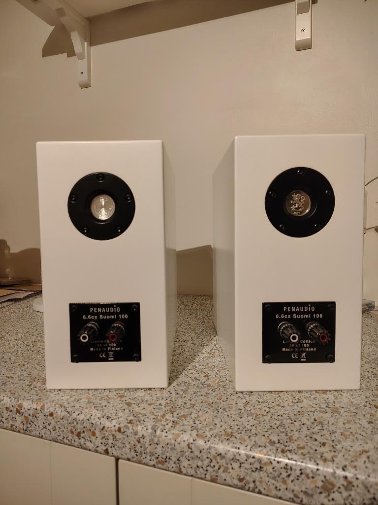 Finnish Penaudio speakers for sale. A small batch of 100 of these were made in honor of Finland's 100th birthday. Beautiful speaker with good sound. The small size of the case makes it easier to place the speaker in the room. I do not own the original box, but shipping is possible all over Europe.