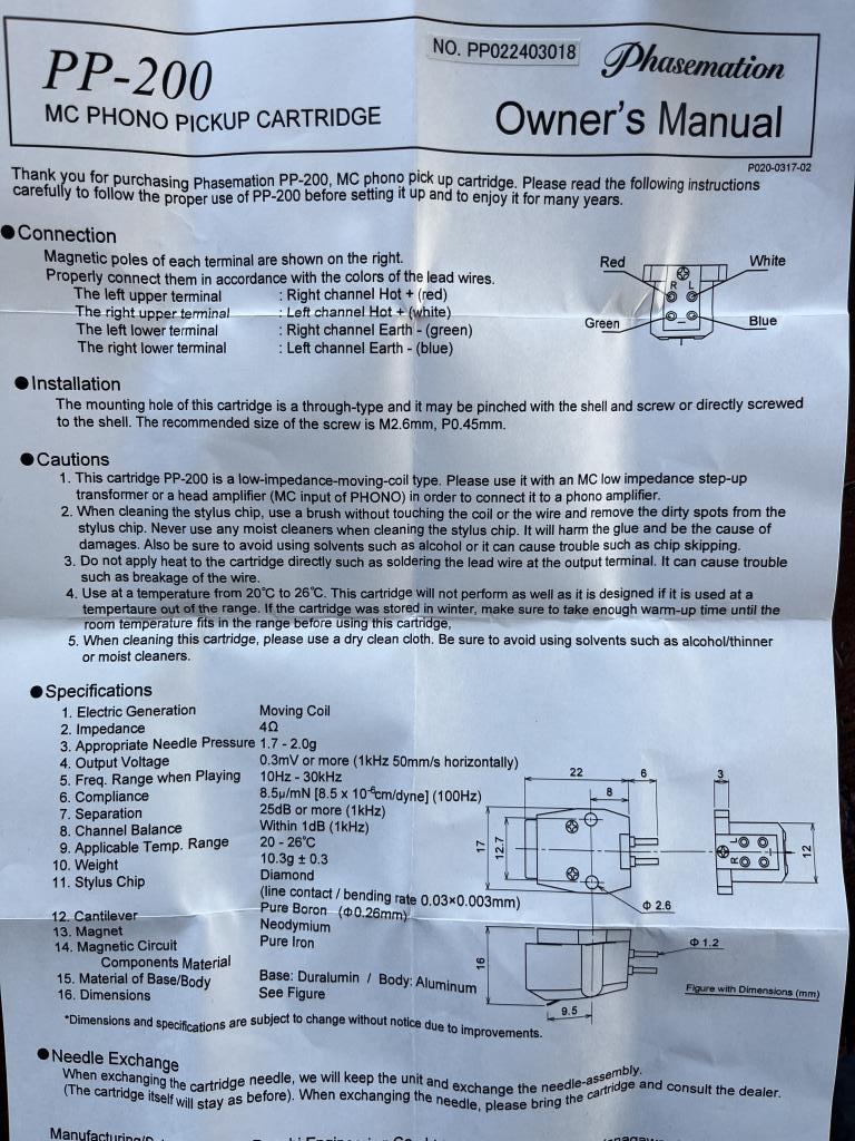 Der Tonabnehmer wurde 9/24 neu gekauft und 5/25 schon durch ein Luxman LMC-5 ersetzt, und nicht mehr gespielt.